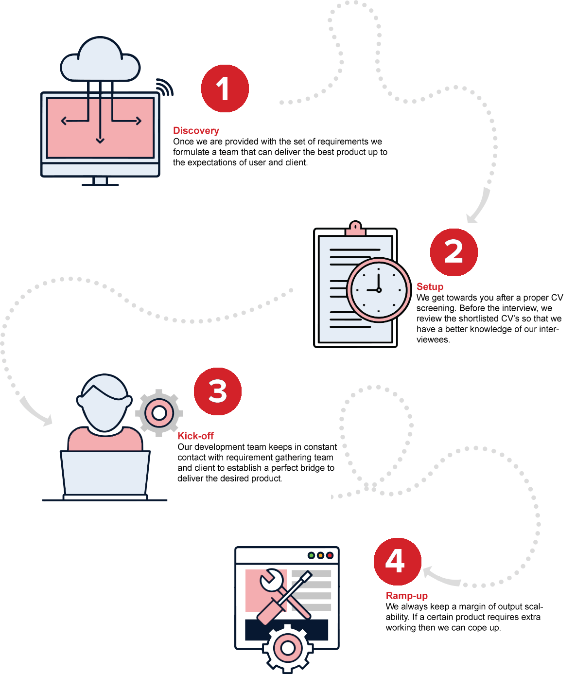 We provide an expert team for startups to make them fast pacing tech companies. It helps them with an extra boost that helps them quickly start and scale their main product development. Our dedicated development team has a great tendency to team up with in-house engineers while using the same tools and best methodologies.